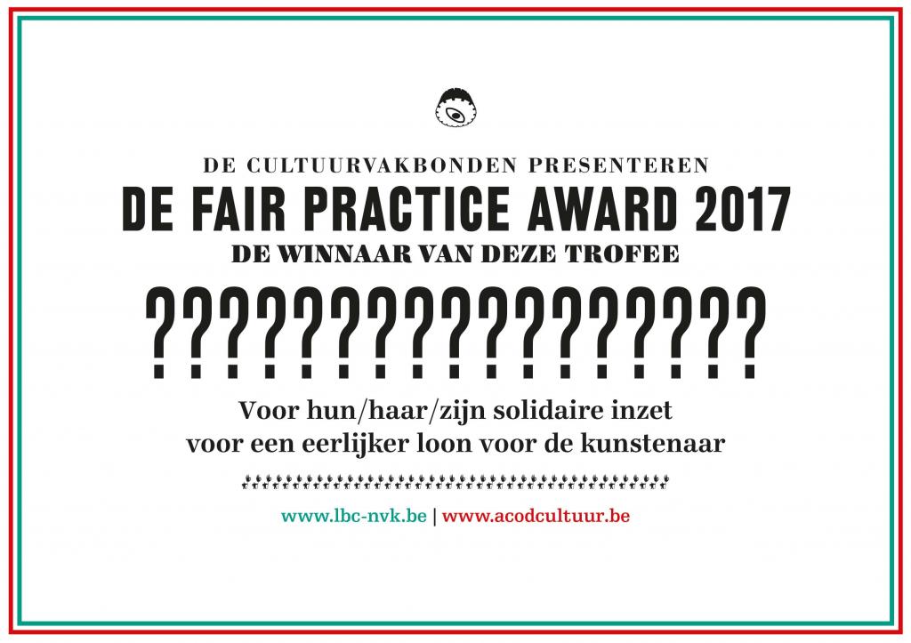 Aanvullend op de Ultimas, de Vlaamse cultuurprijzen, hebben ook de cultuurvakbonden een trofee in de aanbieding: een Fair Practice Award voor solidaire initiatieven. Want ook in rechtvaardigheid kan je een winnaar zijn. Voor 2017 gaat die naar de ondertekenaars van het ‘Handvest voor de Podiumkunstenaar’. Waarom?